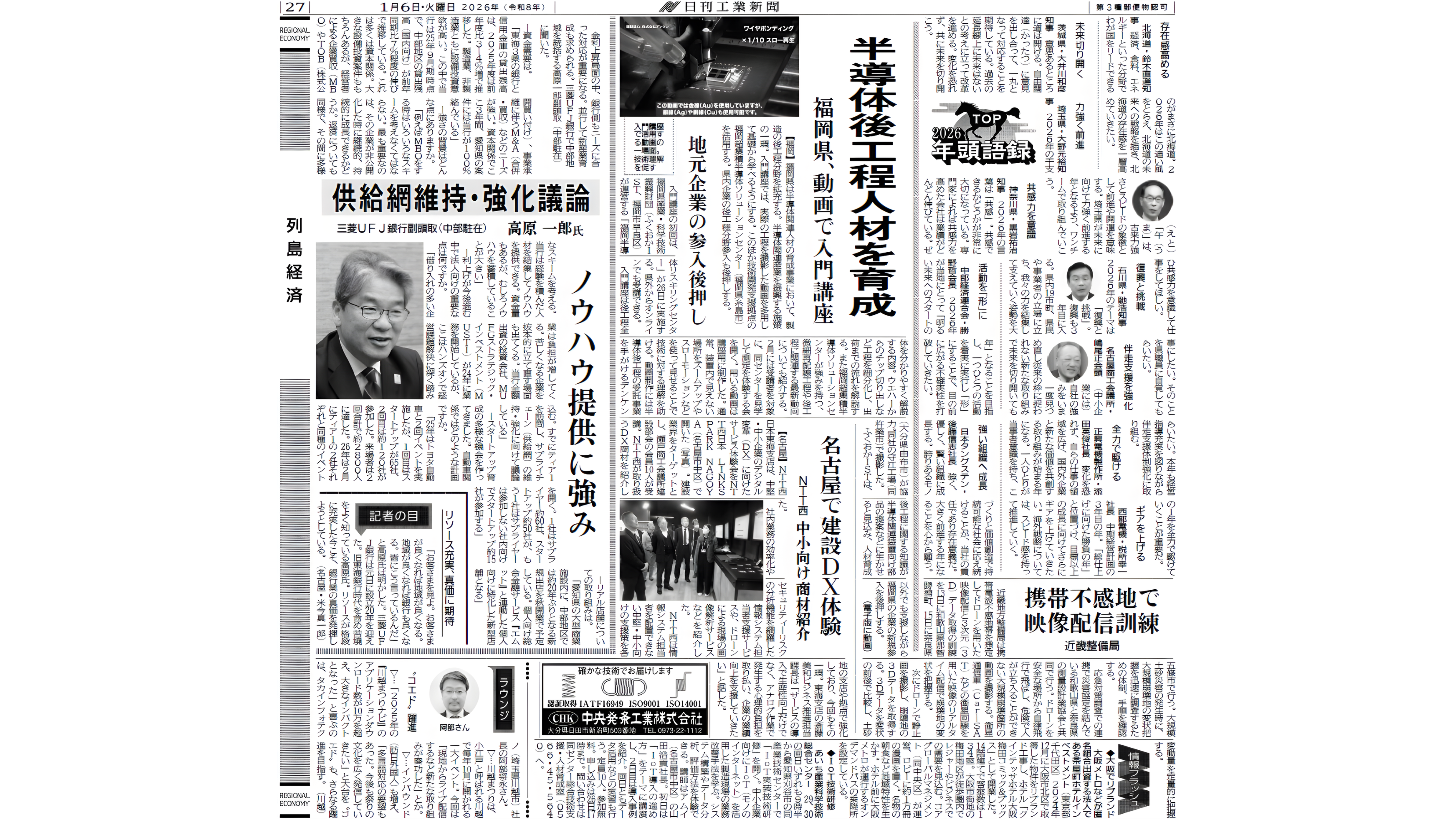 日刊工業新聞にて、社長コラムに当社代表阿部のインタビュー記事が掲載されました。
