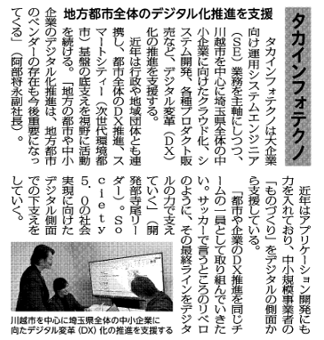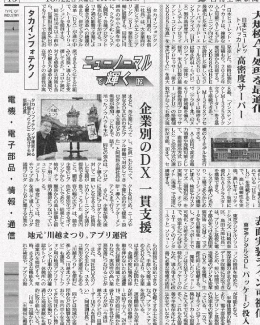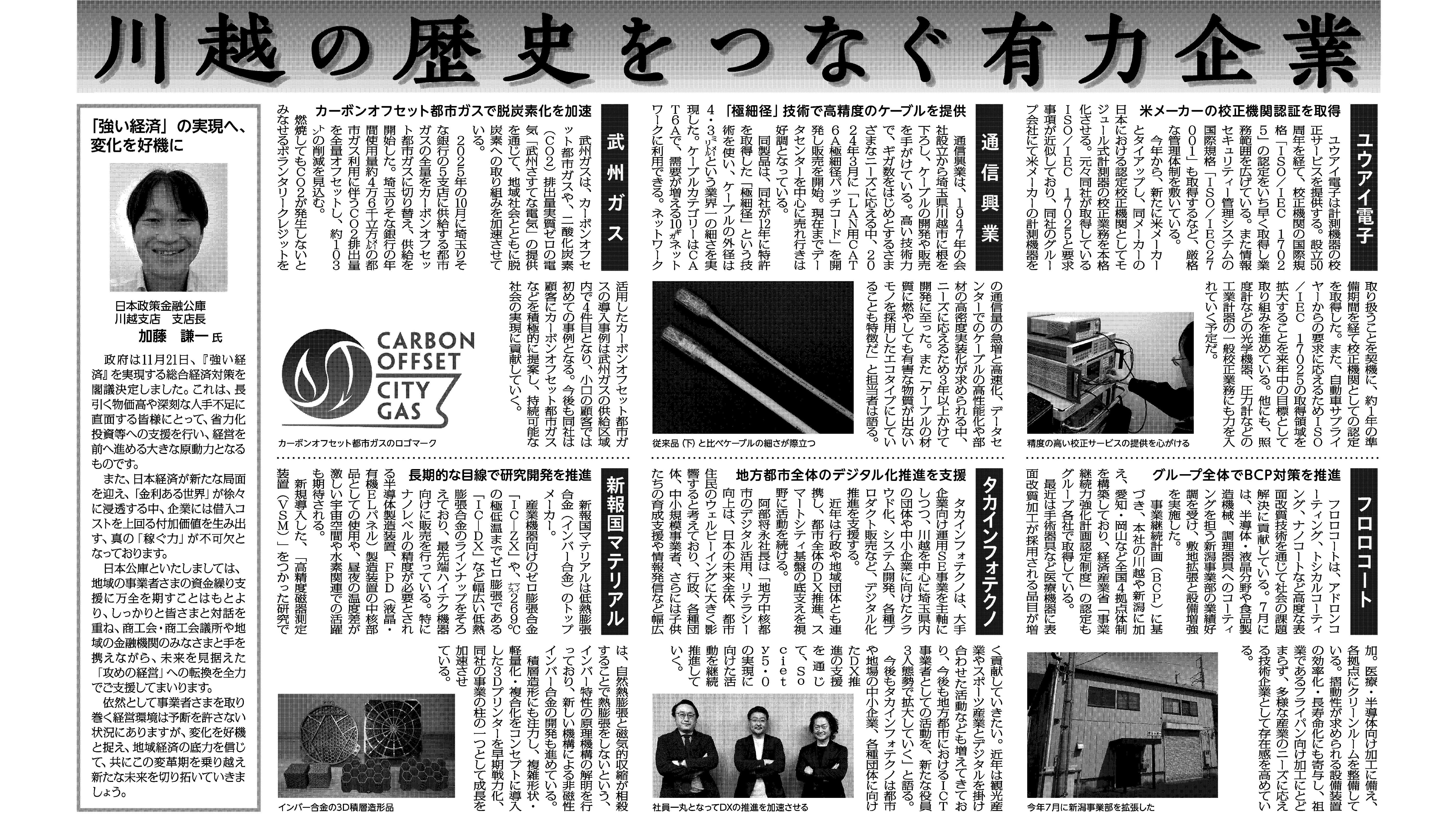 日刊工業新聞にて、「川越の歴史をつなぐ有力企業」として当社の記事が掲載されました。